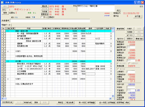 | 見積にかかる作業が大きく、計数管理の行いにくい建設業ですが、実績を少しずつ蓄積し、整理・分類することによって事前の予算をたてることが可能になりました。 |